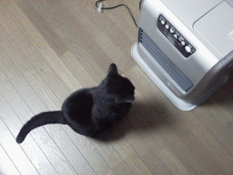 スイッチを押すと前に来て温風を待つ大きくなったクロ